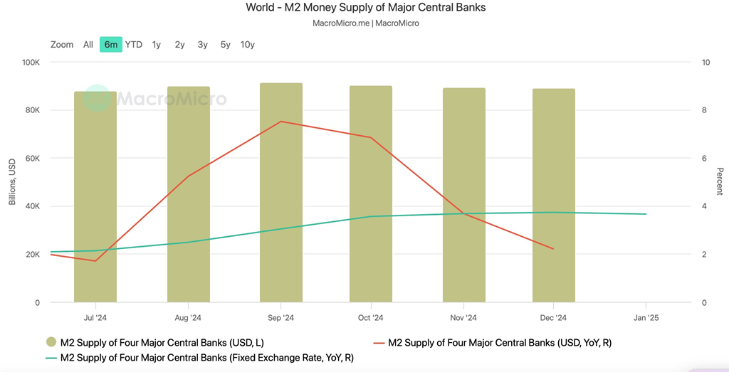 The M2 supply of the four major central banks reached 3.65% in January. Source: MacroMicro