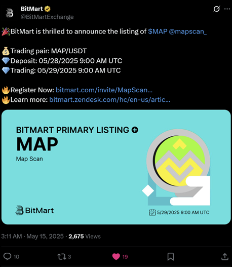 The global crypto community is heating up every day as the prestigious exchange BitMart confirms that it will officially list MAP Coin on May 29, 2025. This is a potential milestone for both MapNode and investors, as a rapidly growing blockchain project expands to the international market.