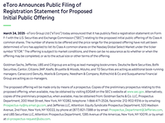 The public filing comes over two months after eToro made confidential filings to the SEC in a move toward a potential IPO in New York, the Financial Times reported on Jan. 16.