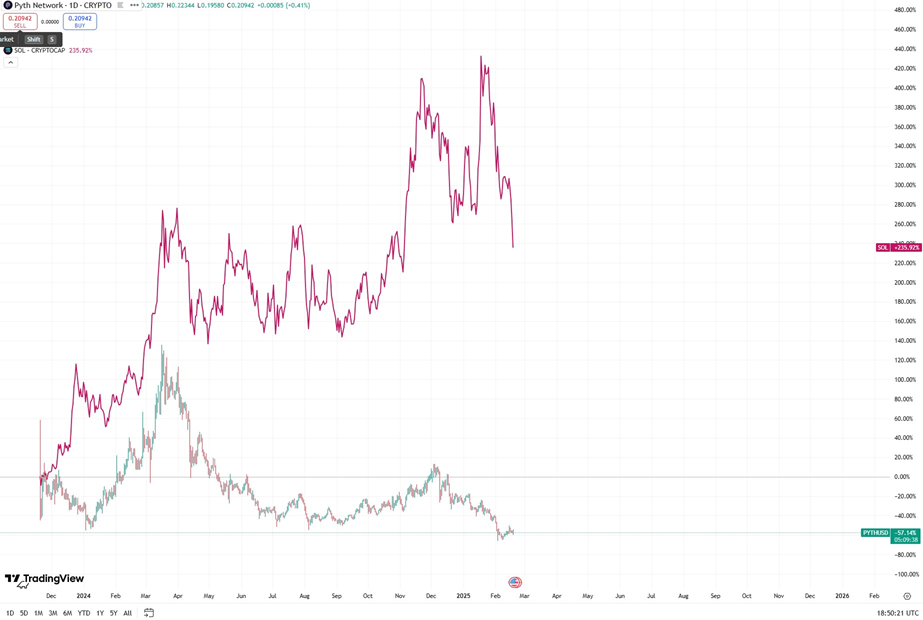 Relative performance of PYTH versus SOL. Source: TradingView