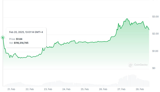 Zhou’s social media post was followed by a drop in Pi Network (PI) prices. On Feb. 20, the token went from a high of $1.84 to a low of $0.61. However, the token surged in the following days, reaching a new all-time high of $2.99 on Feb. 26.